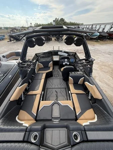 Expand your expectations with the 24RZX. Exuding confidence, its razor edge design is complemented by its distinct lines and lush double diamond stitching. With a culmination of our latest advancements, the 24RZX goes big, not just in size but in performance, surf waves, luxury, storage, and freeboard. If you crave power, state-of-the-art technology, and want to stand out - the 24RZX is the boat for you.