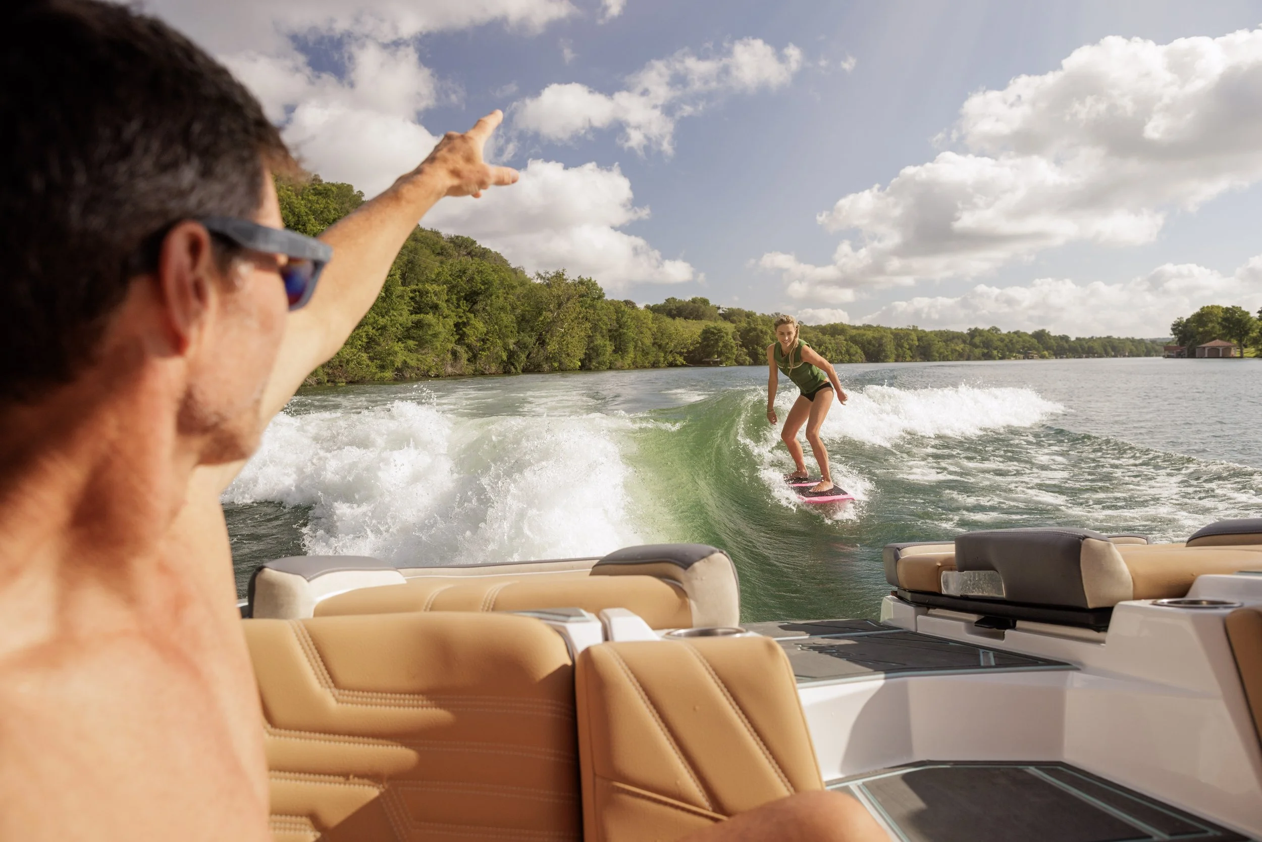 - Effortlessly change the music, adjust the volume, access the boat's RGBs, control heaters and heated seating, and more, all from the Co-Command screen.